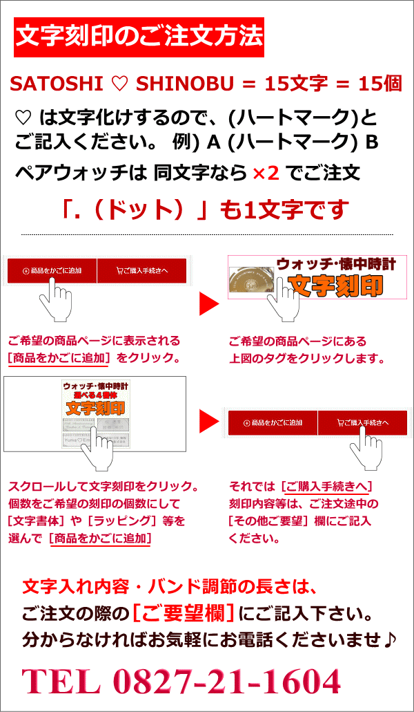 【ウォッチ/腕時計・懐中時計/ポケットウォッチの文字入れ・文字刻印】 1個からお受けします 選べる4書体 世界に一つだけのオリジナルウォッチになります ラッピング・のし書き・手提げバッグも無料サービス [納期2週間][コンビニ受取対応商品]