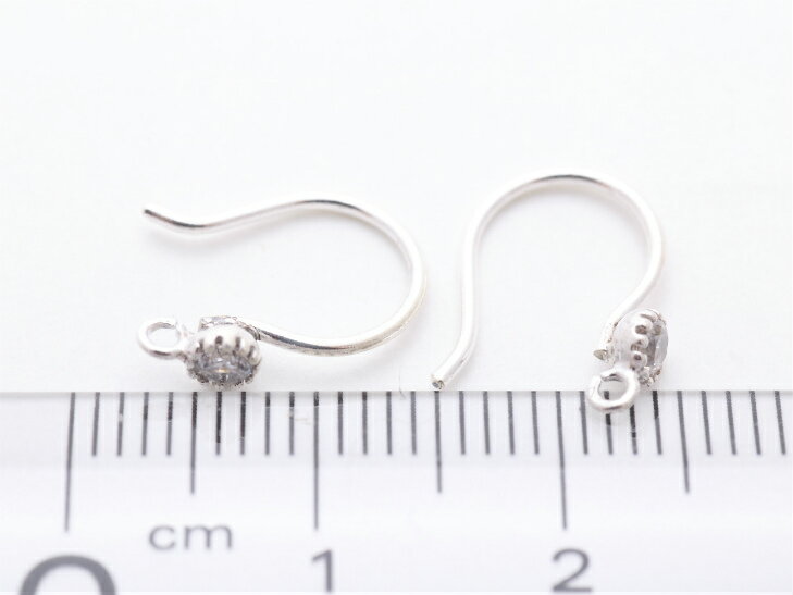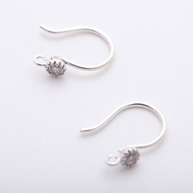 【ポイント11倍】 【シルバー925ラインストーン付U字ピアスフック(約13x12mm)1ペア(2ヶ)】 アレルギー対応 カン付 フックピアスパーツ ピアス金具 副資材 問屋 素材
