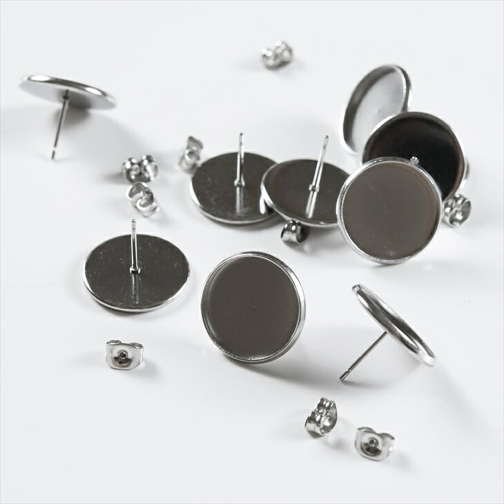 【ポイント11倍】 サージカルステンレス ピアスパーツ ポストピアス 台座付サージカルステンレス 316Lキャッチ付 シルバー 内径16mm 10個 5ペア ポストタイプ アレルギー対応 ポストピアス金具 約1.6cm 基礎金具 ピアス 材料 問屋 ハンドメイド資材 さや工房 沙や工房