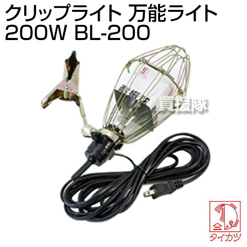 仕様 メーカー 鯛勝産業 品名 クリップライト 万能ライト 200W 品番 BL-200 定格電圧 100V コードの長さ 5m 定格消費電力 200W
