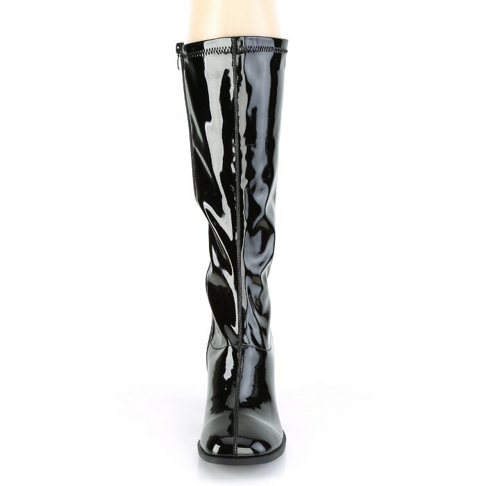 ロングブーツ レディース メンズ ローヒール ストレッチ ダンスシューズ ブーツ ロング コスプレ セクシー ステージ 衣装 アニメ 仮装 大人 サンタ 大きいサイズ 小さいサイズ ブーツ クリスマス PLEASER プリーザー 8cm ヒール 黒 ブラック エナメル ファスナー 【取寄】