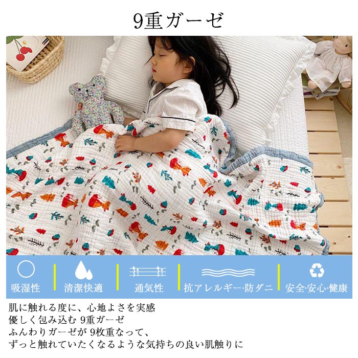 ガーゼケット シングル 綿100% 9重 ガーゼ ふわふわ 夏 洗える 肌掛け 丸洗い 吸湿 吸水 速乾 ブランケット ケット タオルケット 幼稚園 保育園 お昼寝 夏 熱中症 ベビー 赤ちゃん 子供 大人 親子 オールシーズン ギフト